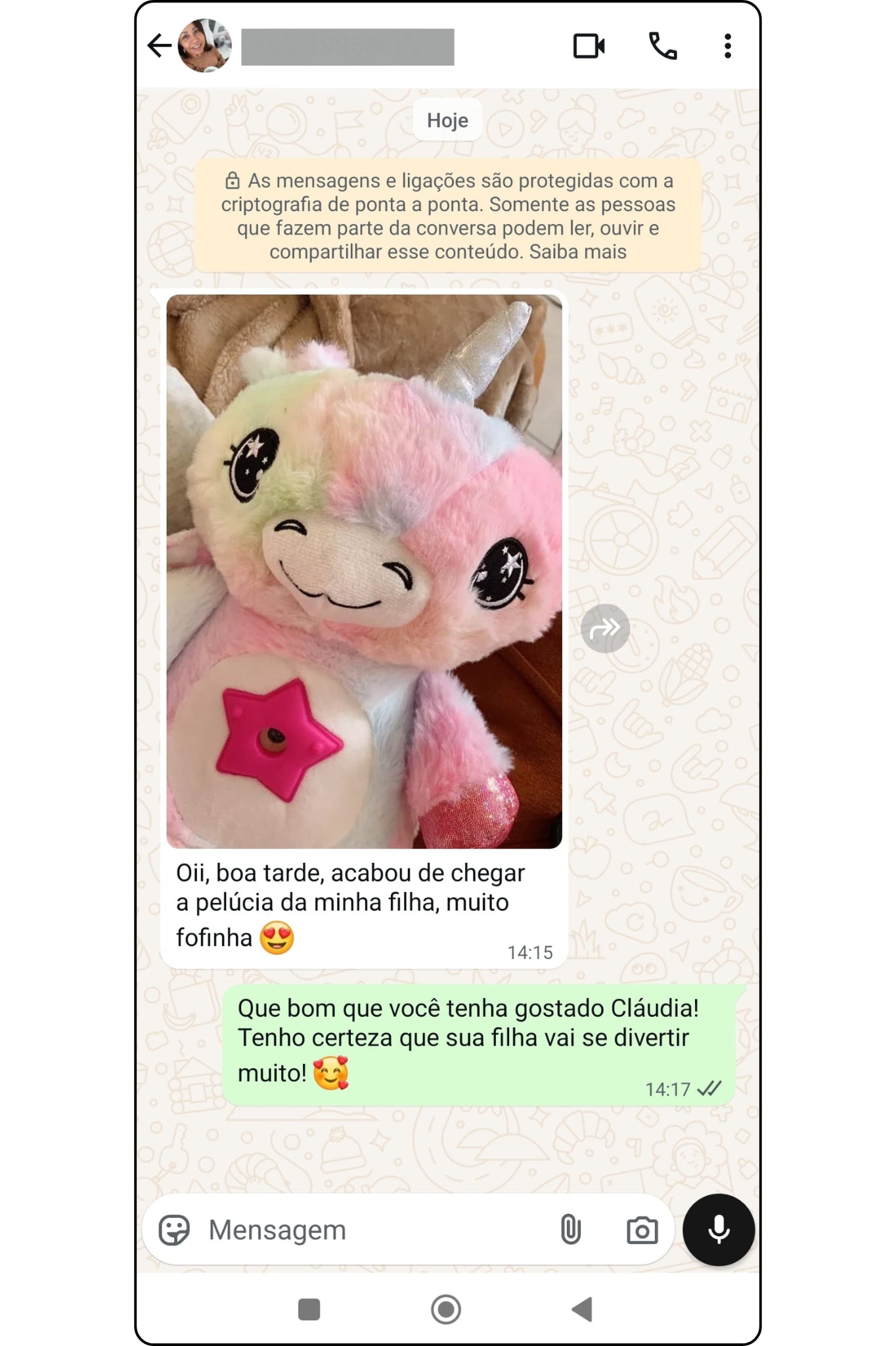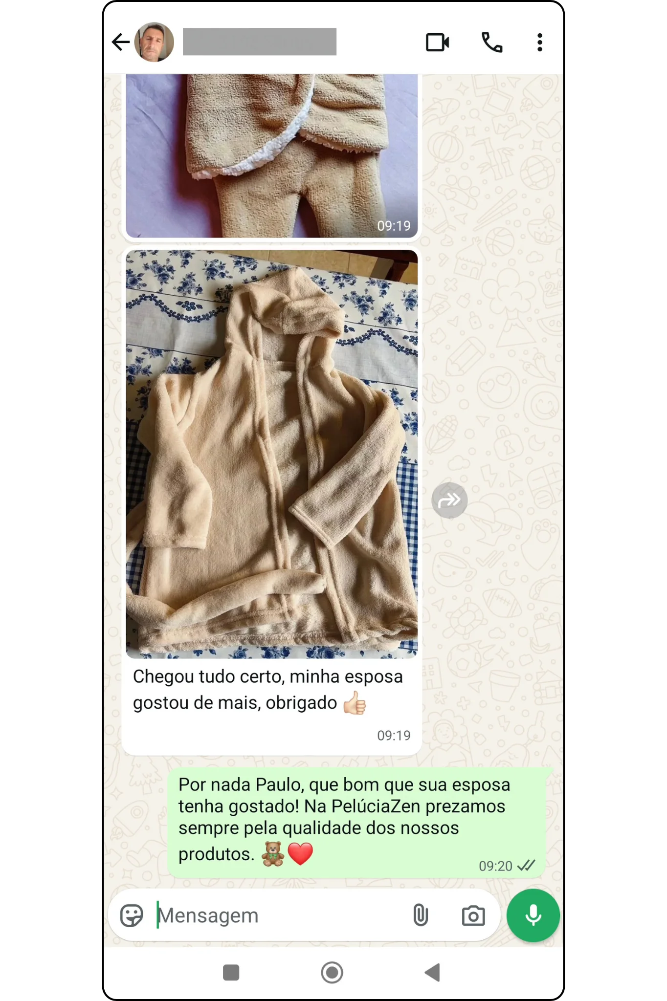 A PelúciaZen foi um achado! Dá pra ver o cuidado com cada detalhe. Me senti segura durante toda a compra e o produto é ainda mais lindo ao vivo. Recomendo de olhos fechados!