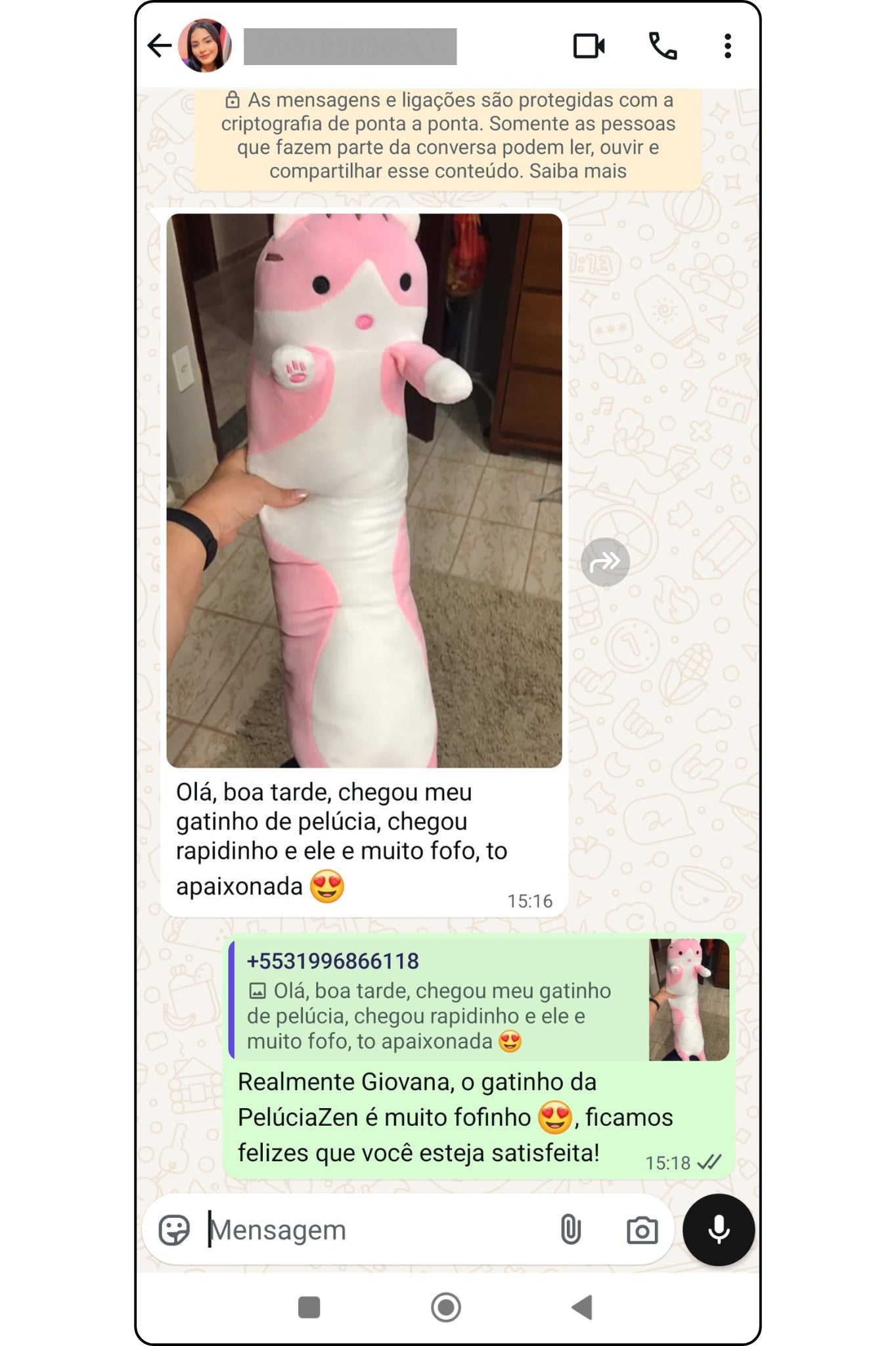 A PelúciaZen foi um achado! Dá pra ver o cuidado com cada detalhe. Me senti segura durante toda a compra e o produto é ainda mais lindo ao vivo. Recomendo de olhos fechados!